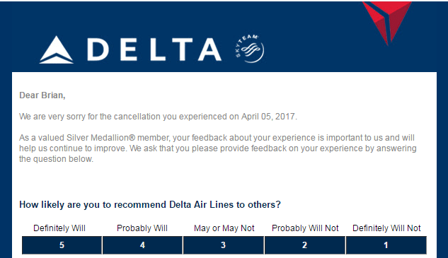 This morning when I woke up, I received an email from Delta asking about my cancellation experience, you can just guess how I and many other who receives this email respond.