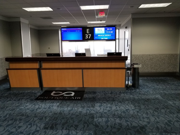 I try to fly one airline as much as I can, but this week’s trip made it a little harder to fly that airline and minimize the drive time after landing. Through my works travel portal I found a smaller airline with a direct flight to the city I need to be that also has an airport shuttle to the hotel I’m staying, Marriot Muscle Shoals. So I do a quick Google search of the airline, route, customer service and customer feedback on social media and it looks legit, so I book a direct flight on Boutique Air.
